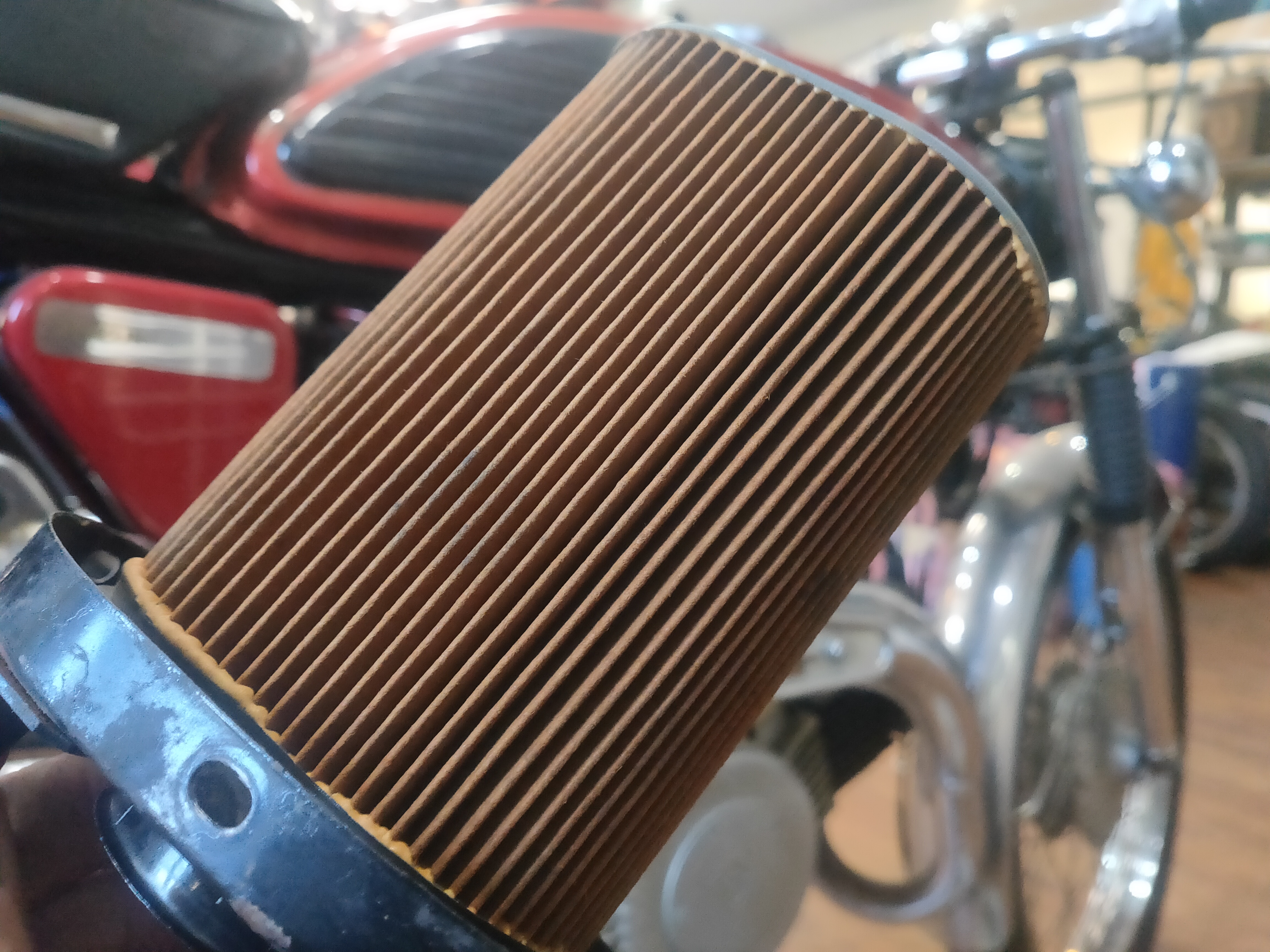エアフィルターは大丈夫そうです。面白い形してますね。枝分かれして2つキャブレターにつながります。