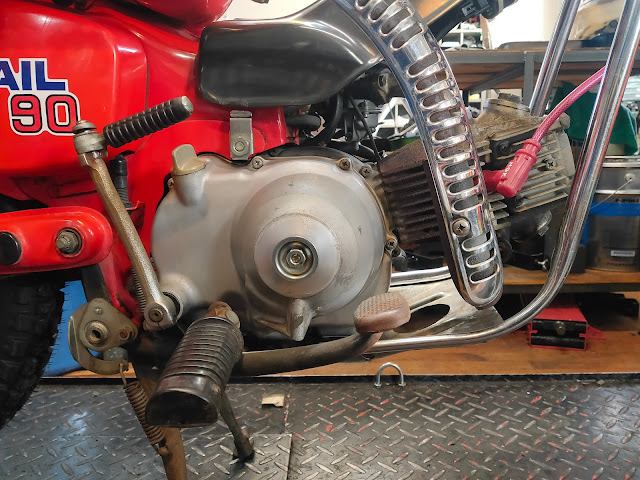 ホンダの大発明遠心クラッチのはずが、踏みっぱなしでもクラッチ切れません。キャブレターの外側はまぁまぁ汚れていますね。